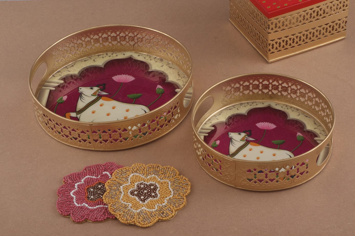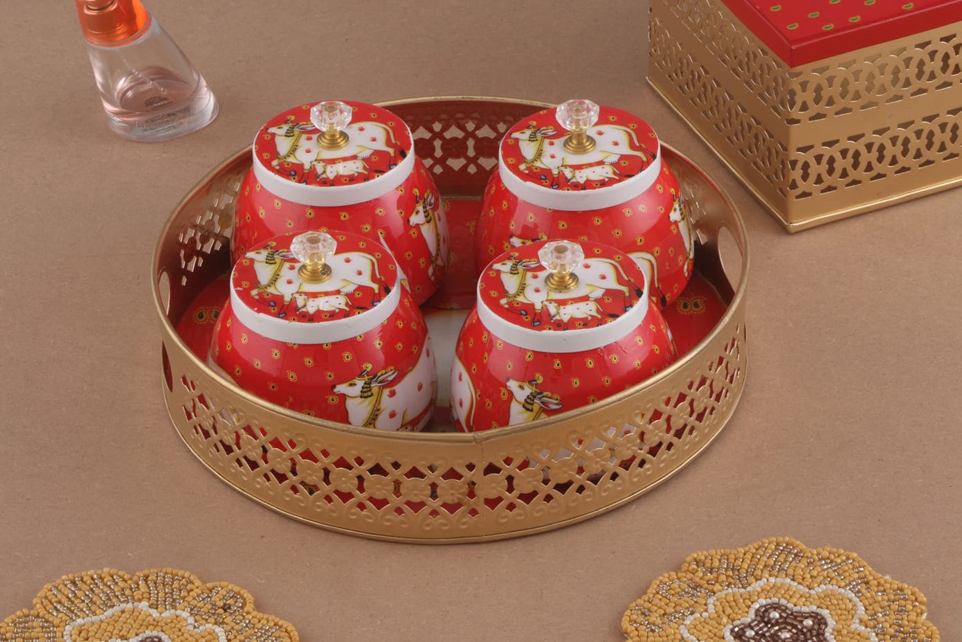 Discover our elegant Pichwai Jars, thoughtfully crafted to add a touch of timeless charm to your celebrations. Perfect for Weddings, Birthdays, or Baby Showers, these jars feature intricate designs that highlight the richness of Indian craftsmanship.