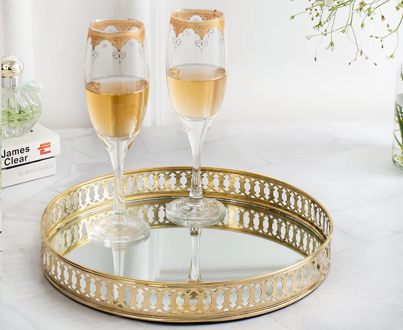 Mirror tray in the classic white and golden colours that